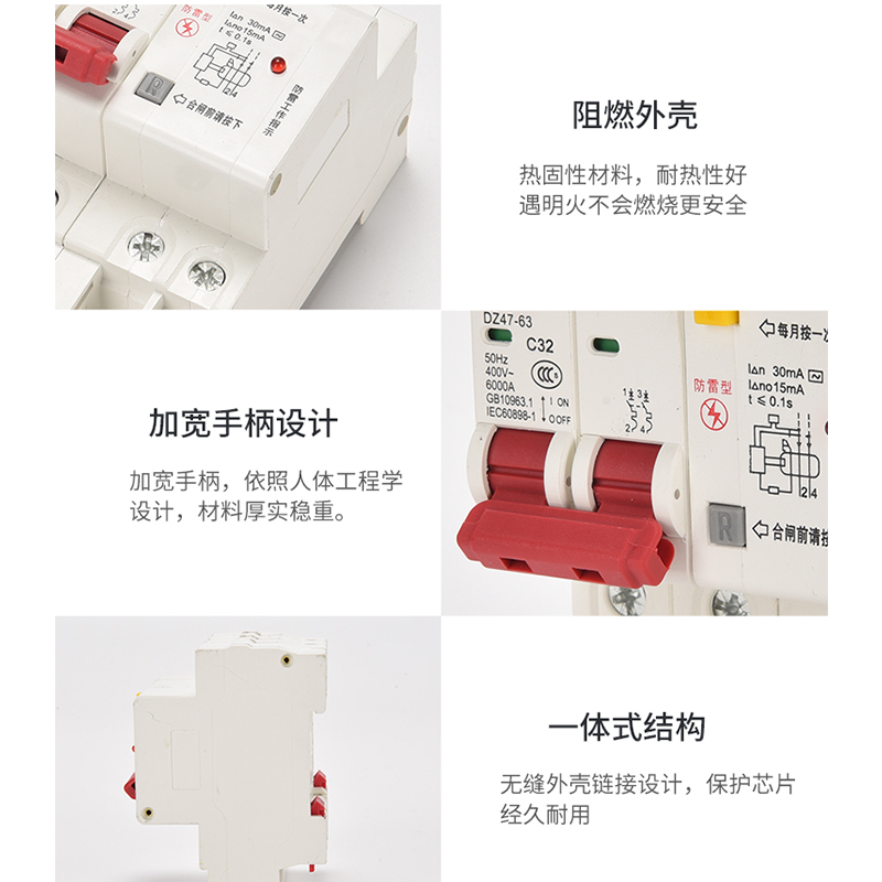 220V TWO WIRES EARTH LEAKAGE PROTECTOR 32A 63A AIR SWITCH 2P ANTI-LIGHTNING STRIKE WITH LAMP HOME BREAK TOTAL OPEN