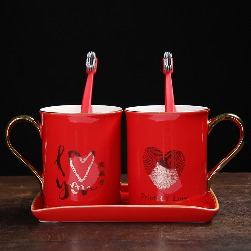 Festive couple ceramic gargle cups a pair of high-end wedding wash cups toothbrush cups set red jar cups