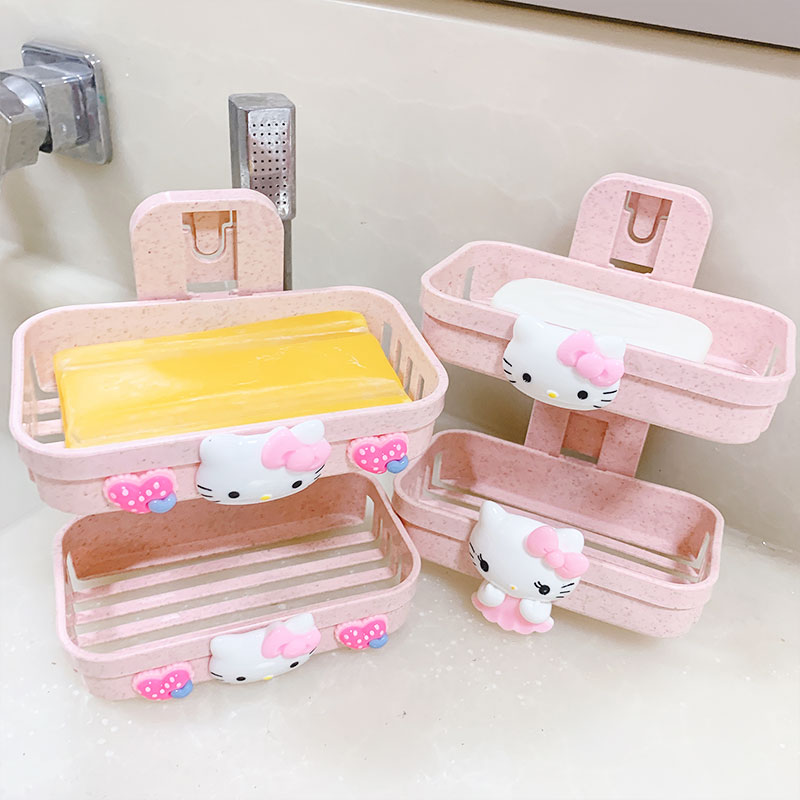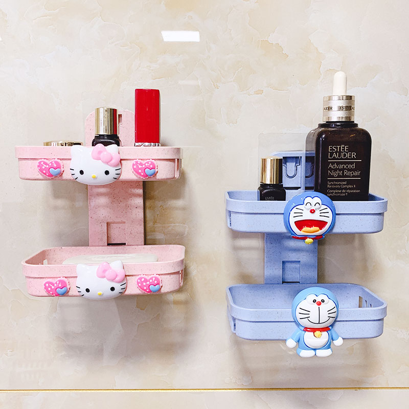 Wall-mounted nail-free double fat box rack drain Nordic ins powder room free hole cute creative personality cartoon