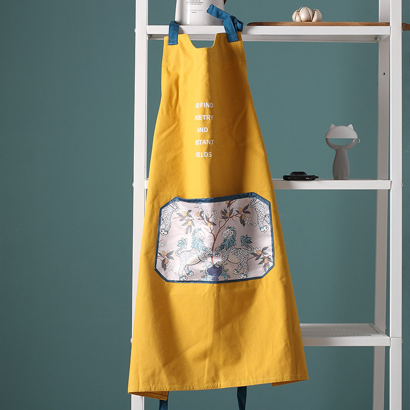 National Tide Apron domestic waterproof oil-proof apron Kitchen Women Fashion Clean Anti-Fouling Cooking Housework Adjustable Apron