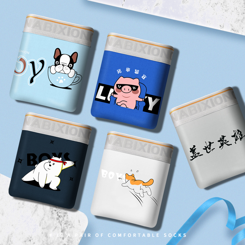 Teen Pants Men's Hair Development Period Four Corner Pants 18 High Junior High School Students 13 Boys Cartoon Pure Cotton Four Corners 15 Year Old Tide