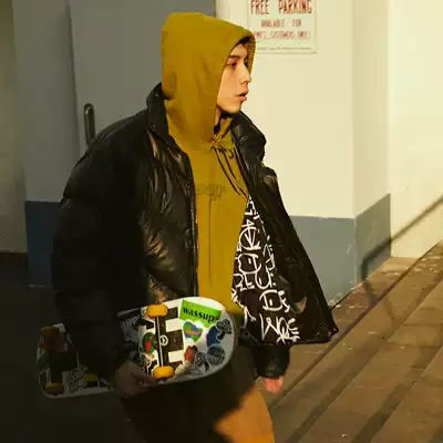 WASSUP winter new stand-up turtleneck PU leather jacket liner graffiti solid color cotton clothes thickened loose jacket