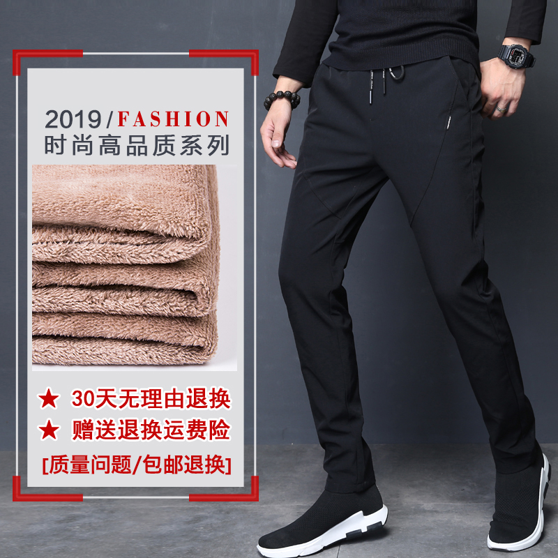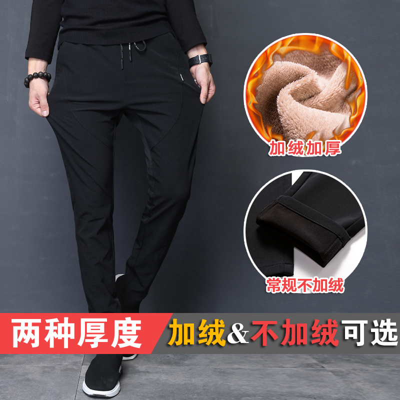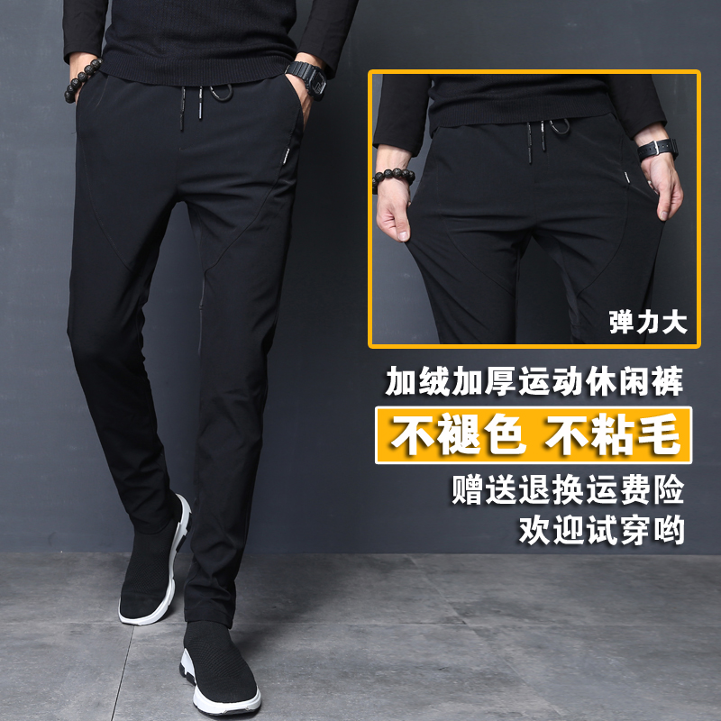 Winter men's pants black sports pants men's autumn and winter elastic drawstring men's casual pants plus velvet thickening youth
