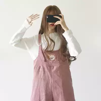 Japanese hipster soft girl cartoon embroidery loose corduroy casual Joker trousers wide leg hug baby bag pants women early autumn