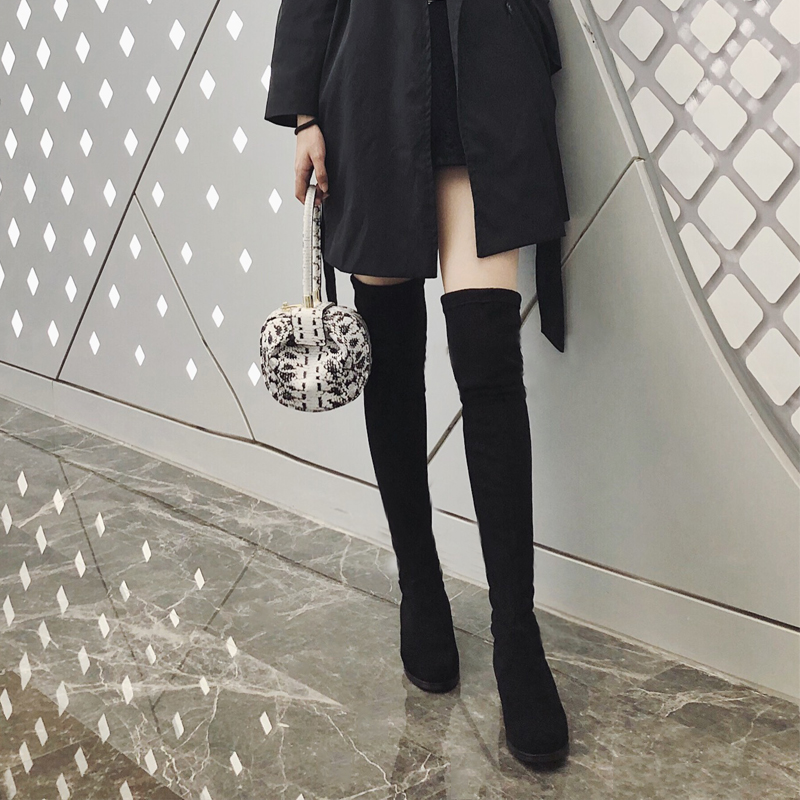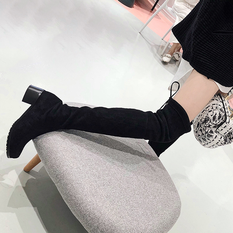 Hong Xiaoge] 5050 over-the-knee boots women's winter plus velvet stretch skinny boots over the knee boots high barrel boots sw boots