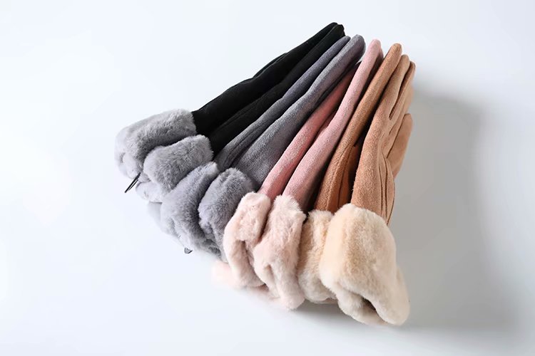 4 colour into the new female deer leather gush autumn winter light warm gloves plush ring driving with touch screen gloves RS126