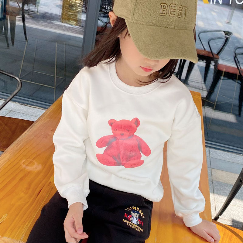 Little bear spring top children's pullover bottoming girl's sweater plus velvet foreign style cute warm baby coat pure cotton