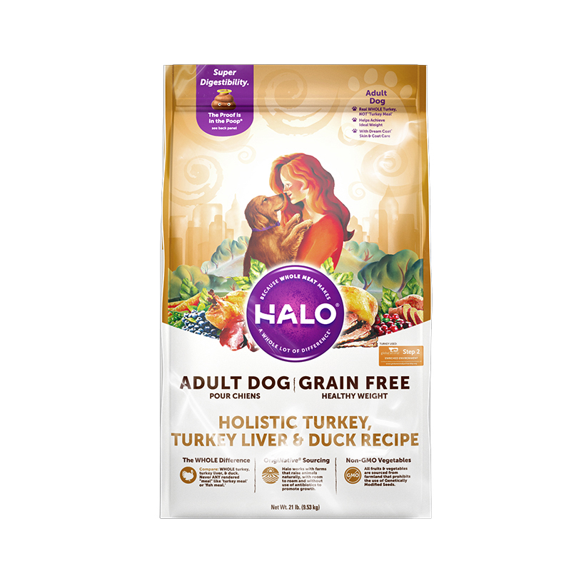 HALO Natural Halo Valleyless Turkey Duck Meat Low Sensitivity Pure Fresh Meat Low Fat Control Weight Into Dog Food 21 lbs