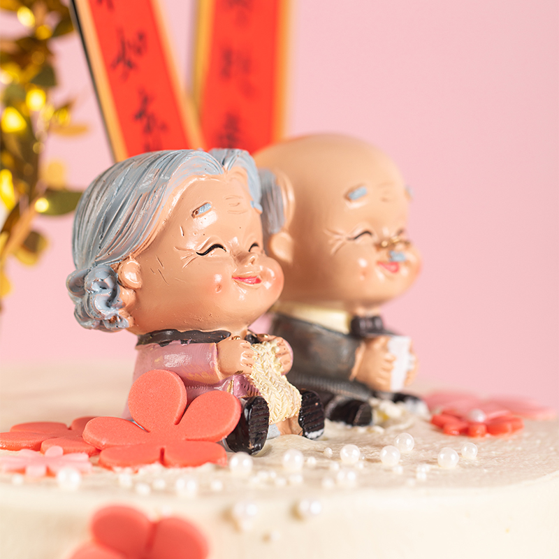 Baking cake decoration hem Old lady old lady weaselwear white head and old cake swinging piece wishing birthday cake decoration
