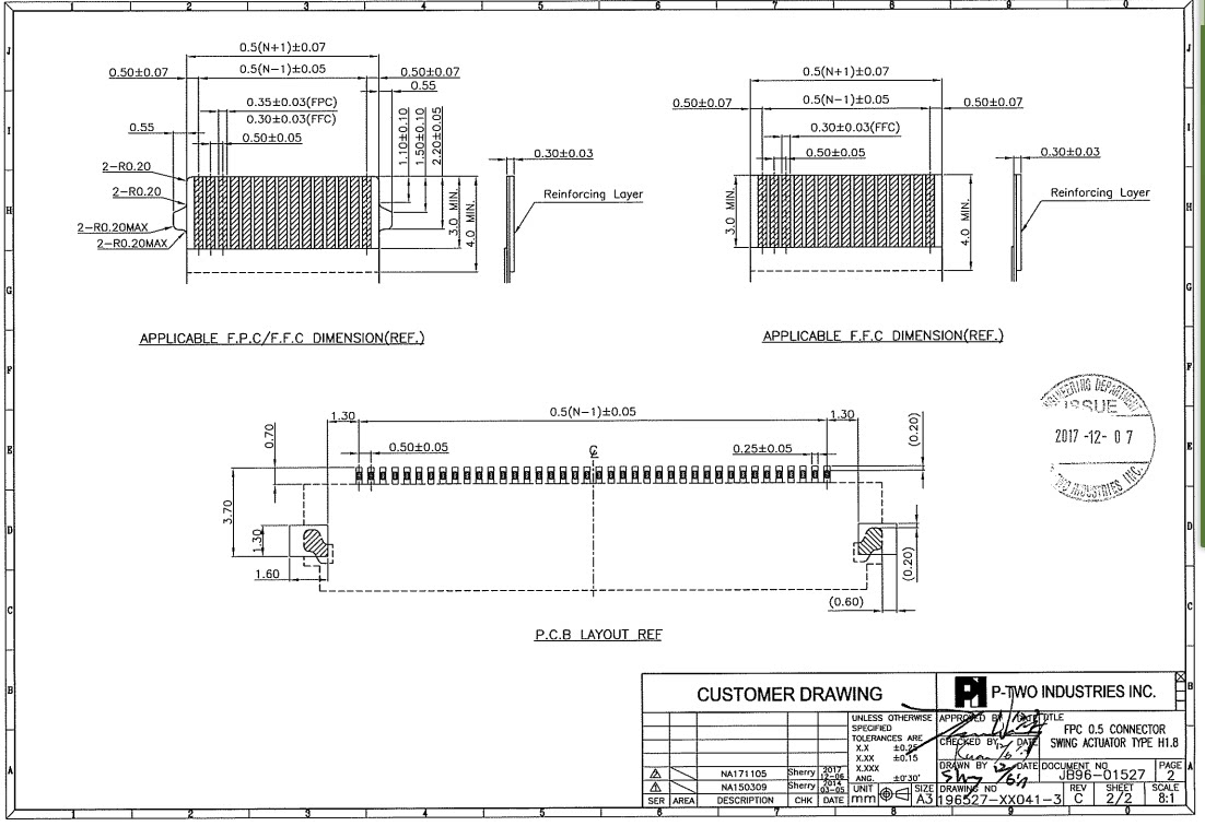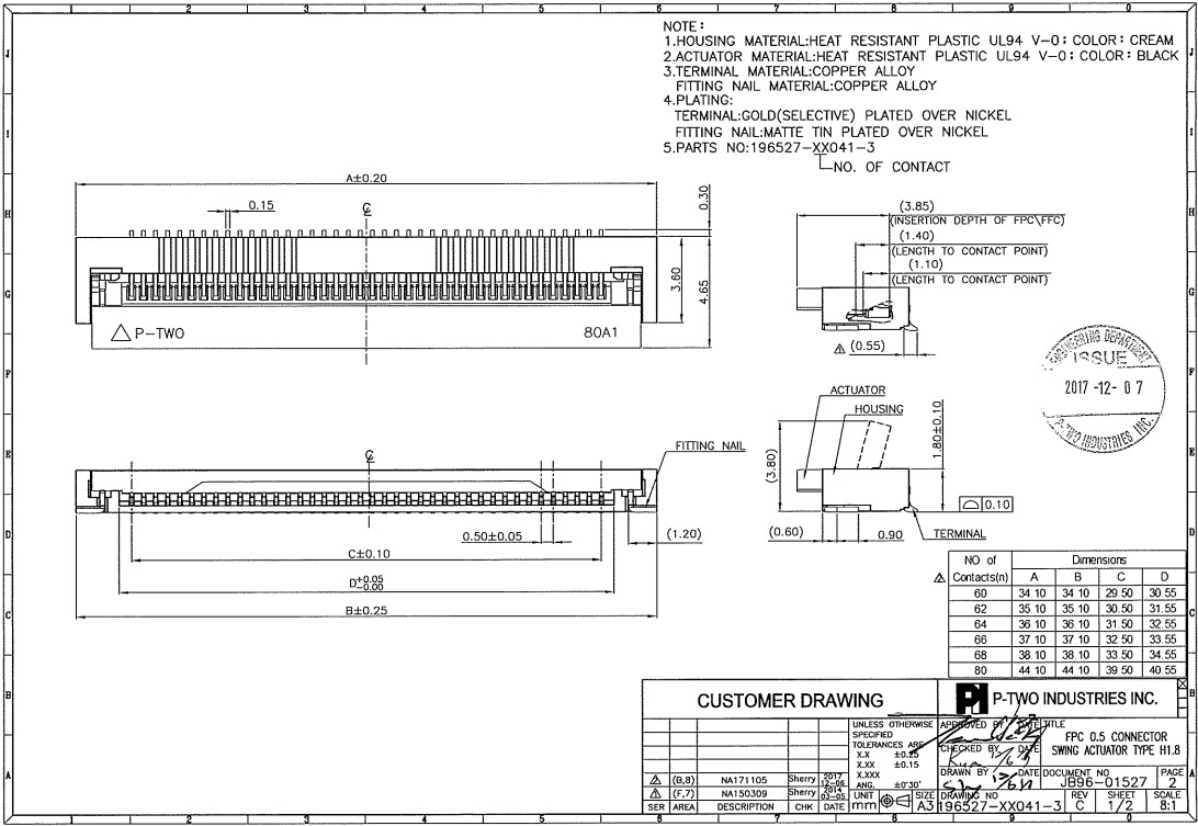 0.5 FPC FFC 68P LCD socket 196527-68041-3 flap with snap H=1.8