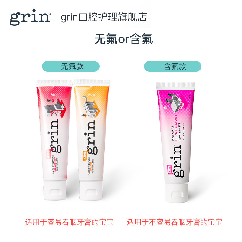 grin New Zealand Children's toothpaste is fluoride-free and safe to swallow for babies aged 0-12 Dentists recommend fluoride to prevent tooth decay