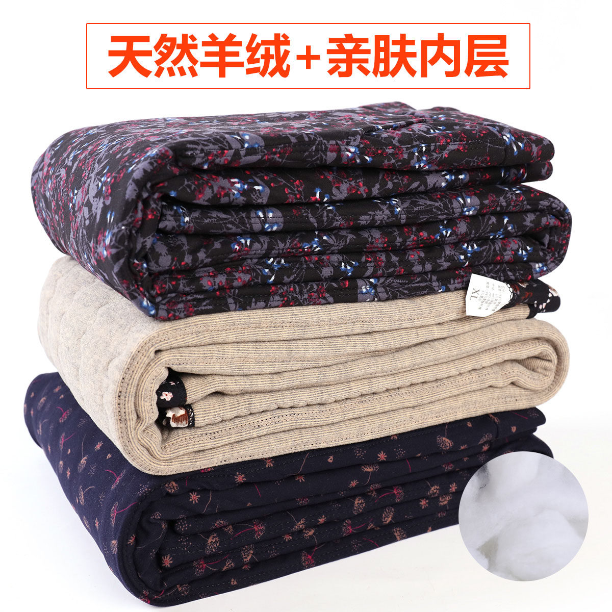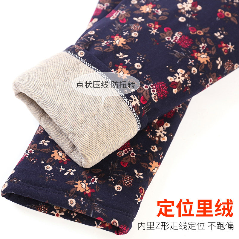Glint Thickened Wool Printed Cotton Pants Woman Middle Aged High Waist Grandma Pants Loose Plus Mast Size Northeast Warm Pants