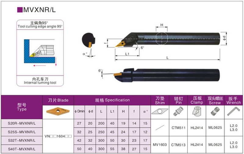 S20R-MVXNR16 20 shank positive knife S25S-MVXNR16 25 shank positive knife S32T-MVXNR16 32 shank positive knife S20R-M
