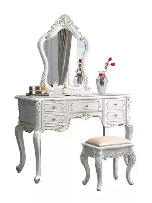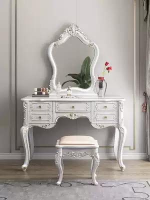 Full solid wood dressing table European style dressing table Luxury bedroom princess dressing cabinet Solid wood girl dressing table stool