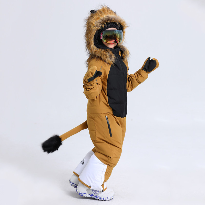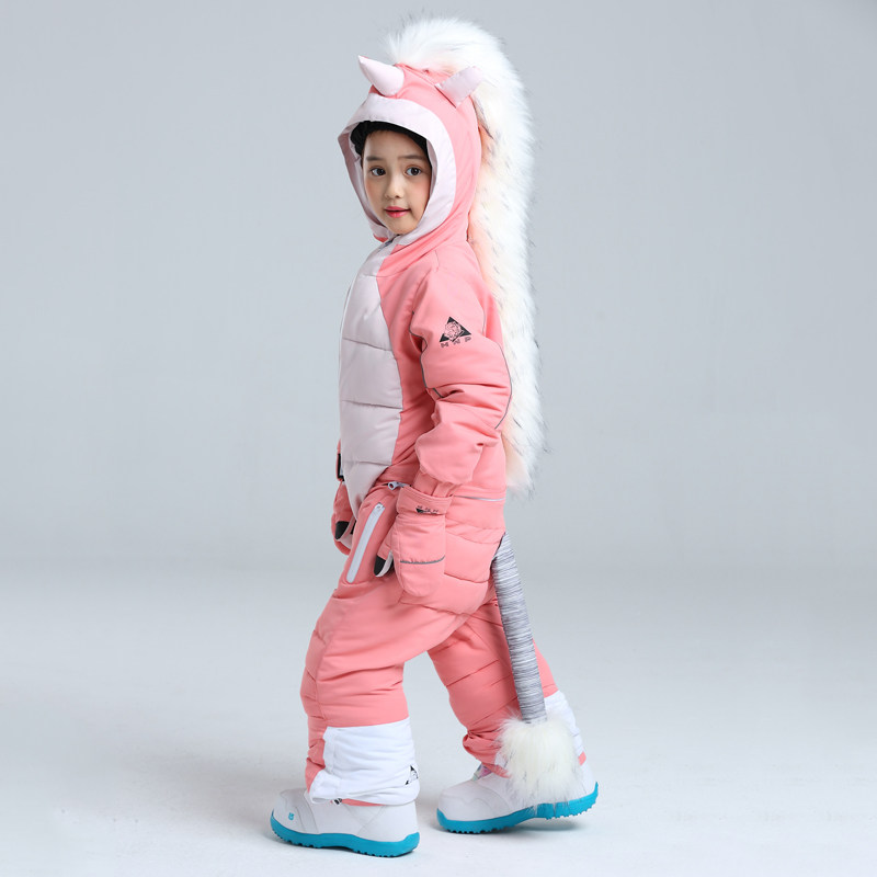 Children's one-piece ski suit net red unicorn dinosaur cartoon snowboard waterproof warm boys and girls winter camp equipment