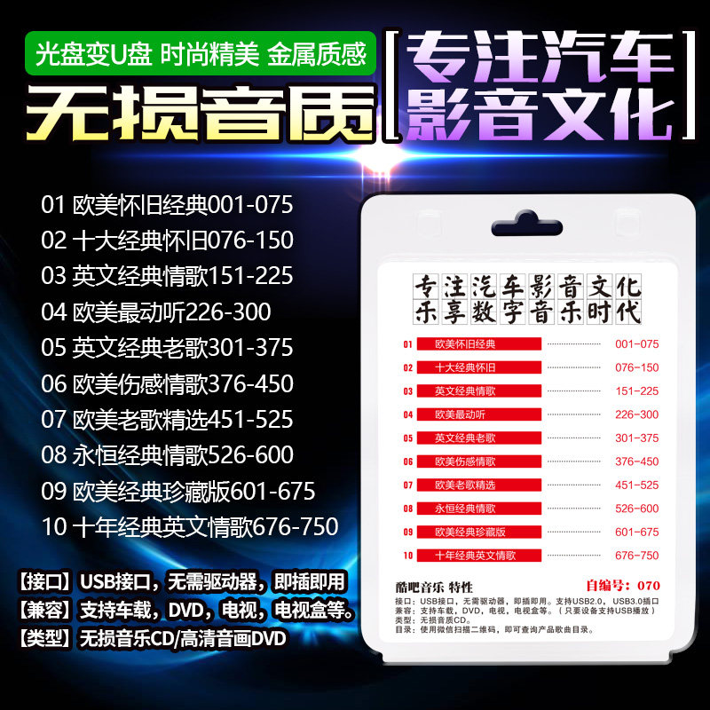 Car U disk English classic song mp3 lossless high sound quality music Europe and America nostalgic golden song car USB stick MP3