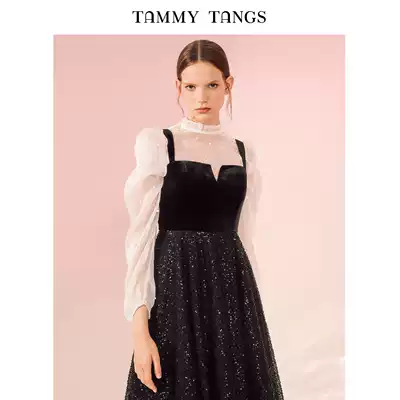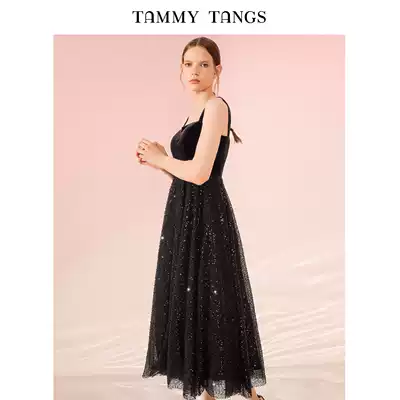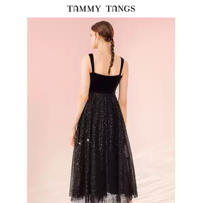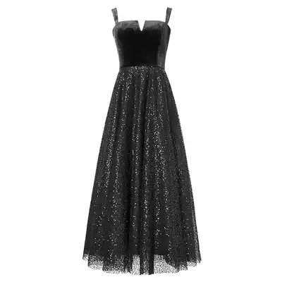 (The same style in the mall)Sugar force heavy industry velvet stitching beaded sequins mesh dress dress long skirt female