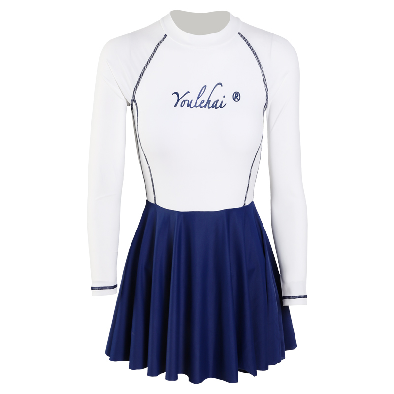 Long sleeve skirt-style one-piece swimsuit women's sport sunscreen flat corner conservative student Adolescent Girl Slim spa swimsuit