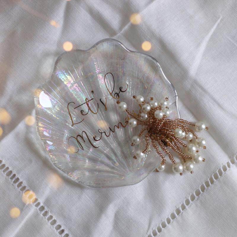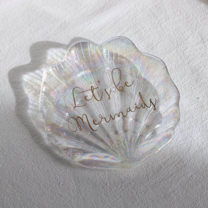 Mengtian Liangpin] girly wind glass colorful shell soap dish small tray gold letter soft decoration jewelry storage plate