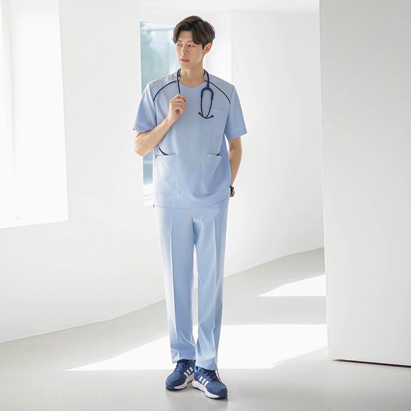 Light Blue Short Sleeve Women's Suit Light Blue Short Sleeve Men's Suit Navy Blue Short Sleeve Women's Suit Navy Short Sleeve Men's Suit Light Blue Long Sleeve Women's Suit Navy Blue Long Sleeve Women's Suit Navy Blue Men's Long Sleeve Suit Light Blue Men