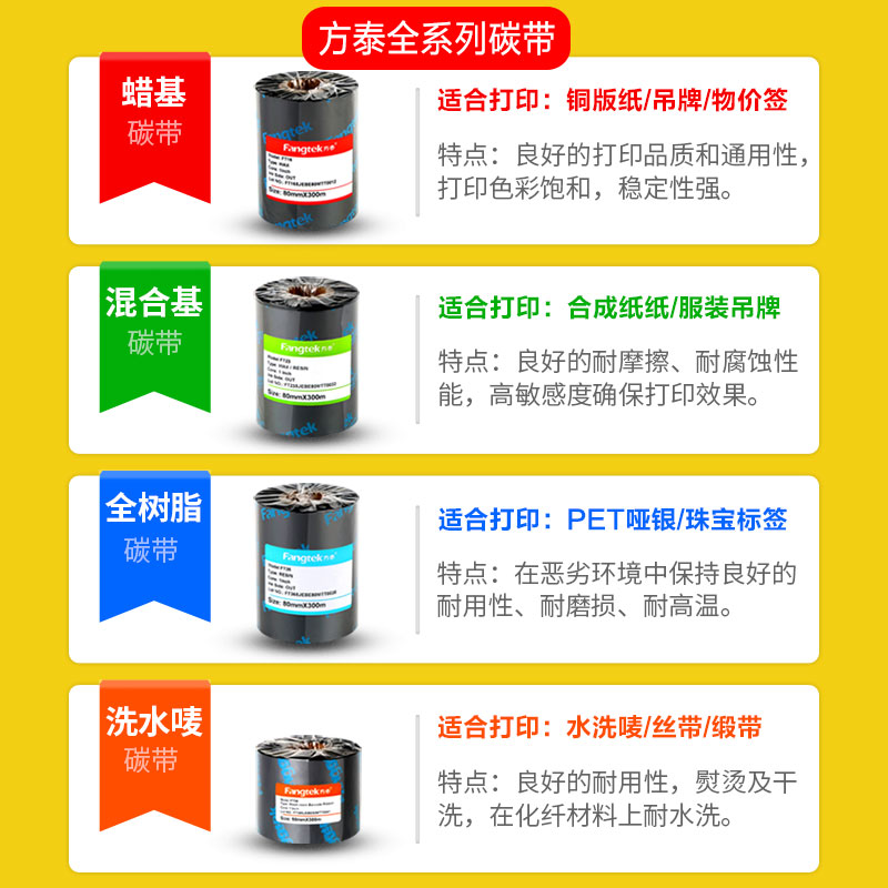 Fangtai mixed base ribbon roll 110times 300 50 60 70 80 90 100mm Beiyang tsc Jiabo coated label paper Self-adhesive barcode printing