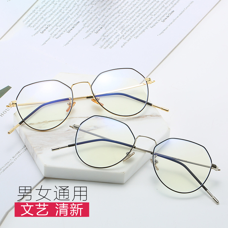Anti-blue light radiation computer goggles polygon eye frame ultra-light flat frame women's myopia glasses men's tide