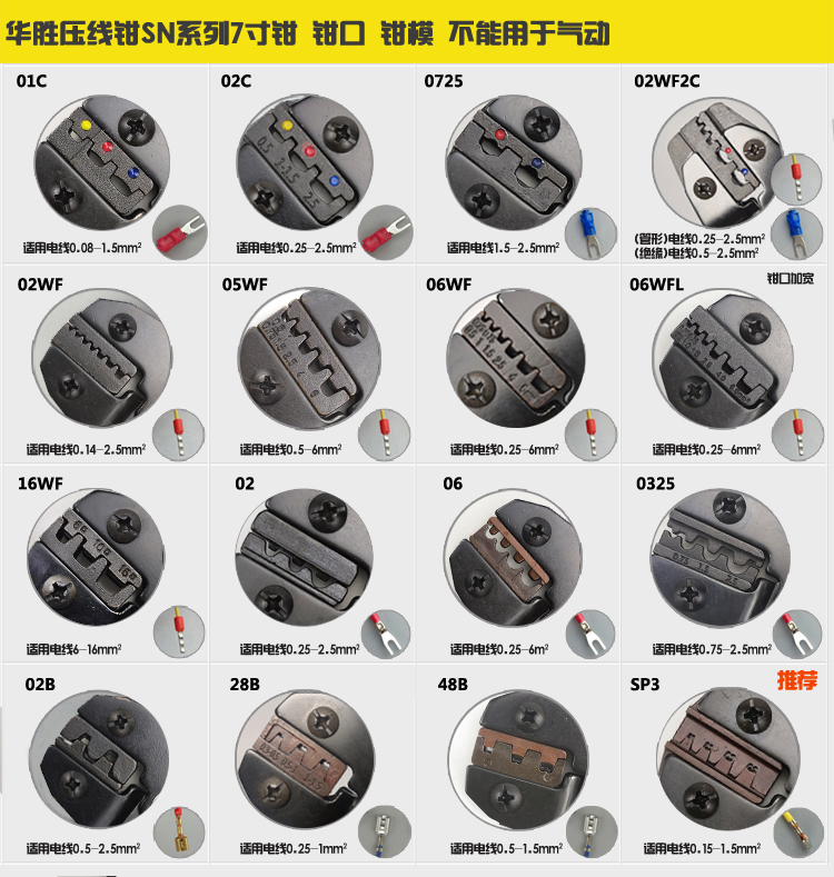Huasheng SN Press Wire Pliers Jaw Pincer Die Insulation Tubular Terminal Inserted Spring DuPont Bare Terminals 28B SP3 Jaws