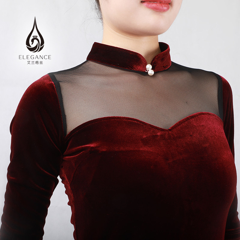 Elange Silk Instructor Training Suit Body Etiquette Performance Suit Korean Suede Black Red Blouse Pants Suit