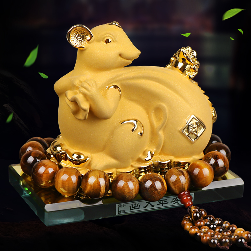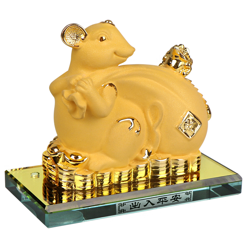 Color box packaging-velvet gold craft-non-fading non-oxidizing year mascot-gift-giving products-exquisite craftsmanship-meaning good fortune rat (ornaments) fortune rat (ornaments) transfer beads
