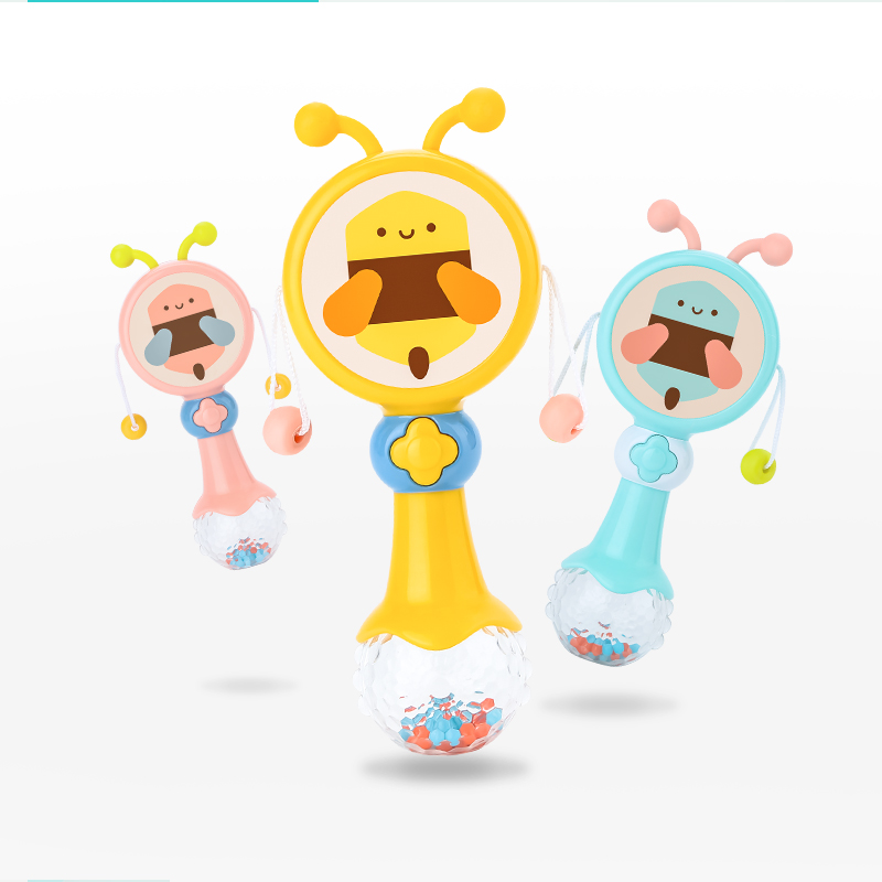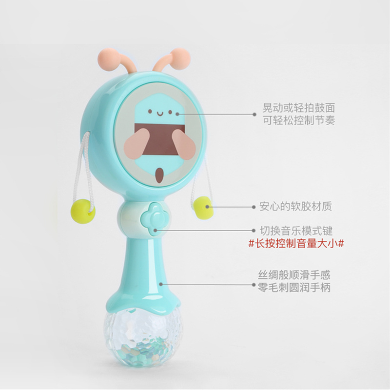 Bainsch Rattle Newborn Baby Can Nibble Drum 6 Music Stick Baby Hand Crank Children's Toy 3 Months
