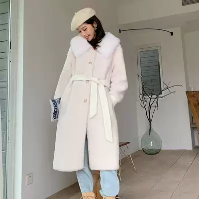 Imported lamb wool sheep cutting fur coat women's coat 2021 Winter grain velvet leather integrated long version coat thin