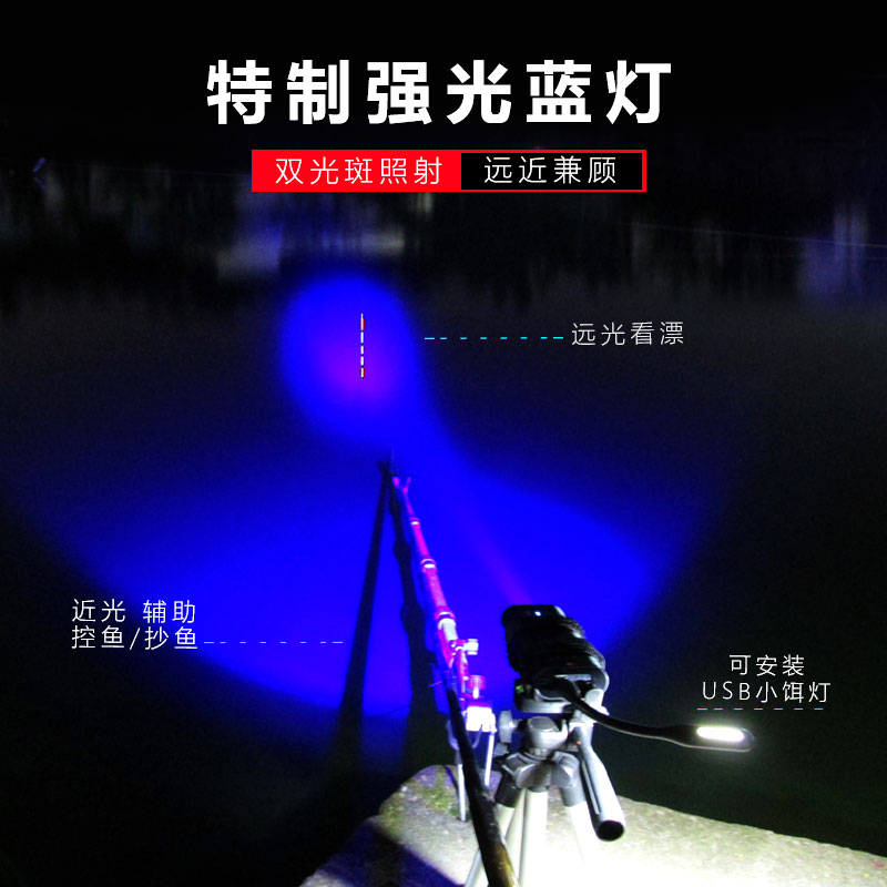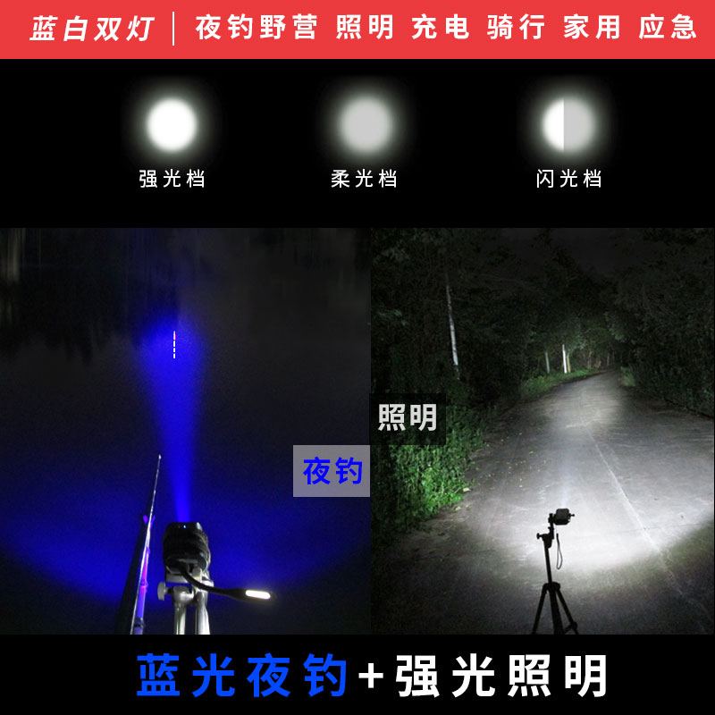 Multifunction Fishing Light Blue Light Night Fishing Light Intense Light Flashlight Afar large electric power long sequel with mobile phone mobile charging