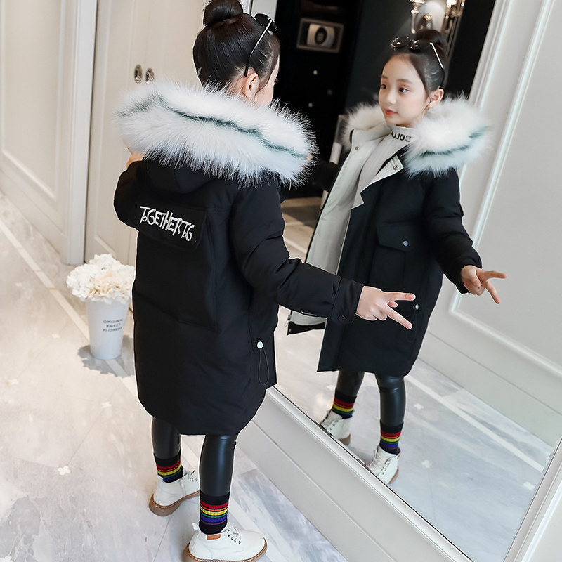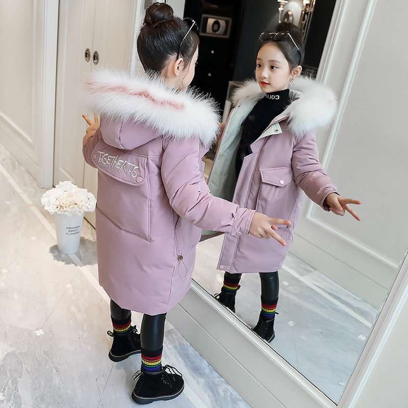 Girls' clothing winter clothing 2020 new Western style children's junior high school girls mid-length cotton jacket 13 years old slim cotton jacket