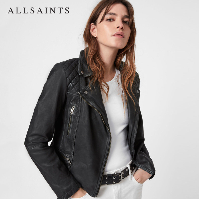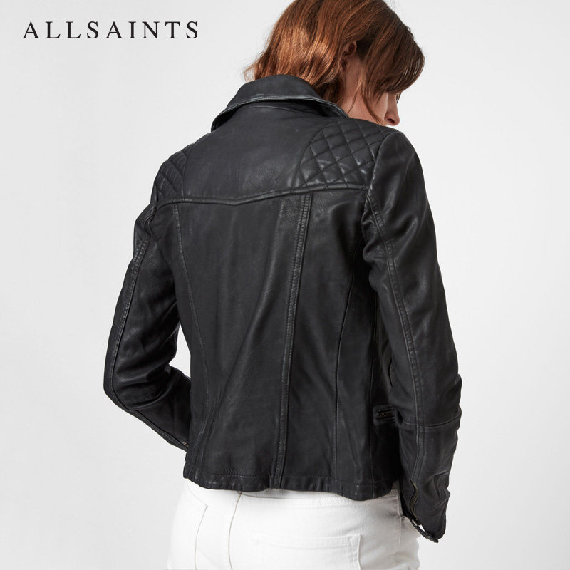 ALLSAINTS Lady Cargo Motorcycle Jacket Spring and Autumn Leather Clothes Sheep Leather Fashion Vintage Jacket WL047C-Z