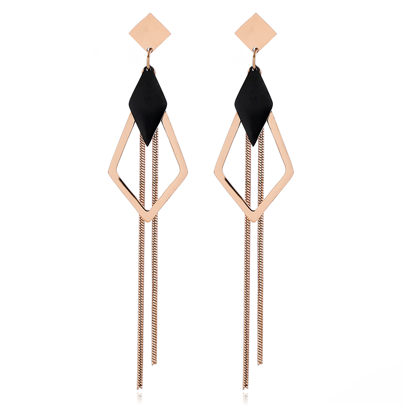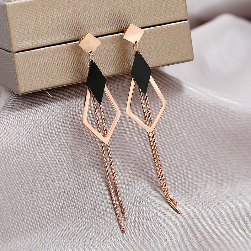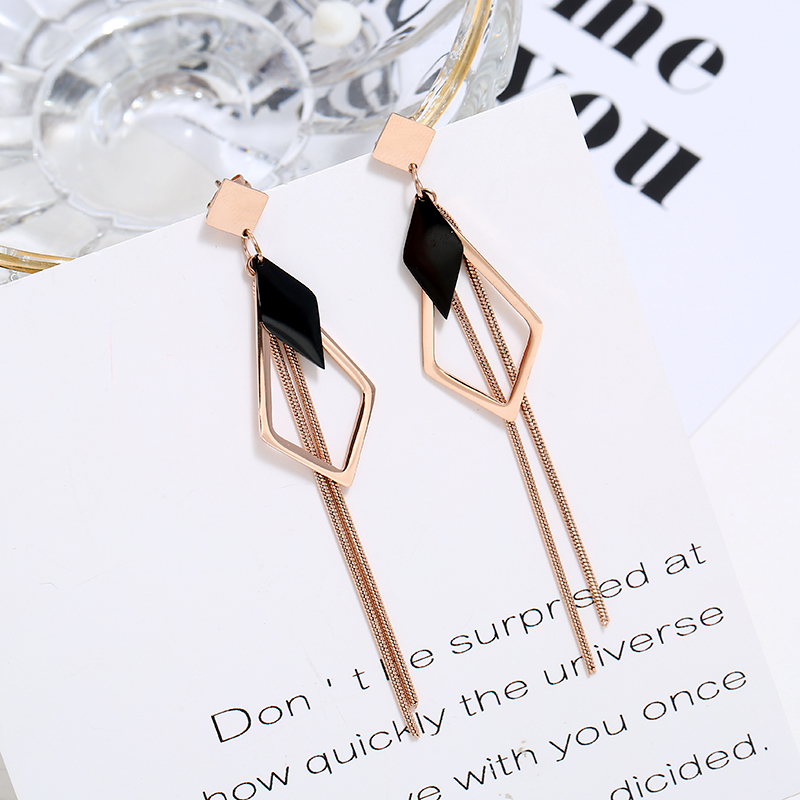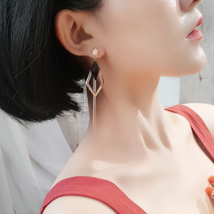2019 autumn and winter new geometric rhombus long tassel earrings women's modified face shape versatile super fairy temperament high-end sense