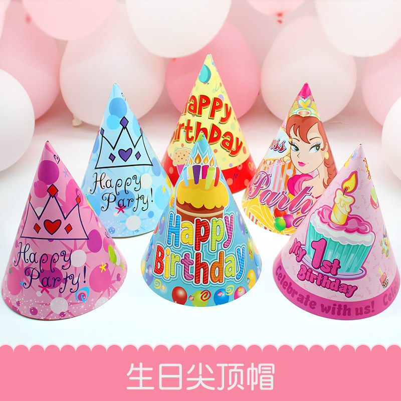 Birthday pointed corner cap small yellow pointed corner cap KT cat pointed corner cap Clown pointed corner cap Blue crown pointed corner cap Year-old male treasure pointed corner cap Princess pointed corner cap Pink crown pointed corner cap