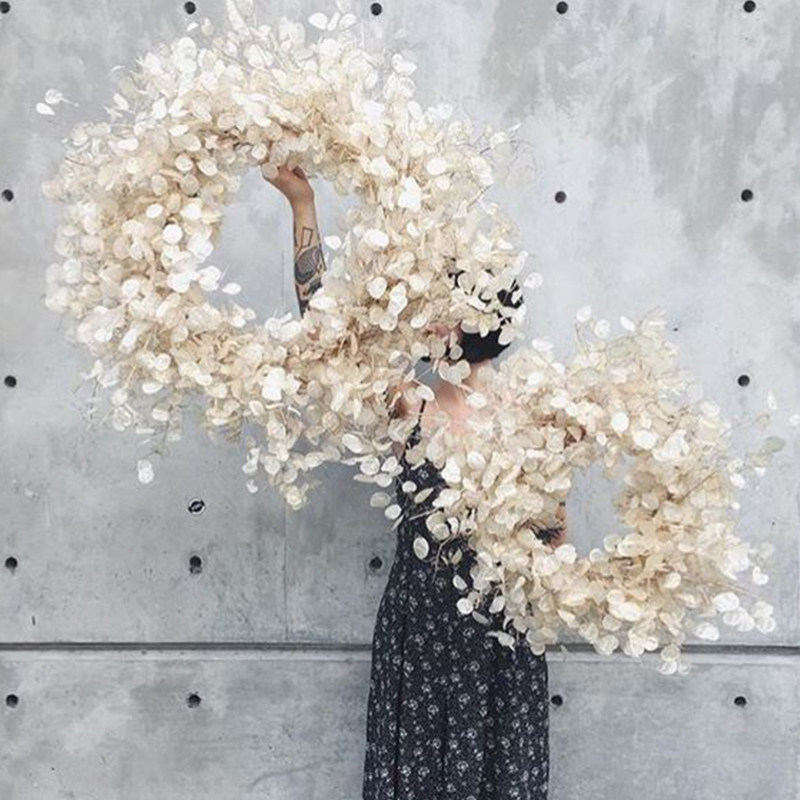 WULIHOME silver fan leaf flower ring simulation wall-mounted festive flower ring doorway pendant wall decoration shop soft dress