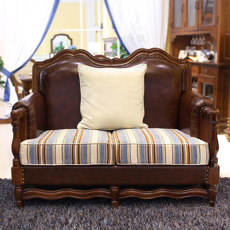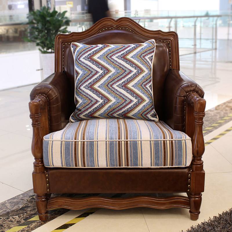 American style genuine leather solid wood sofa Jianmei living room top layer cowhide large apartment size 123 combination European style living room furniture