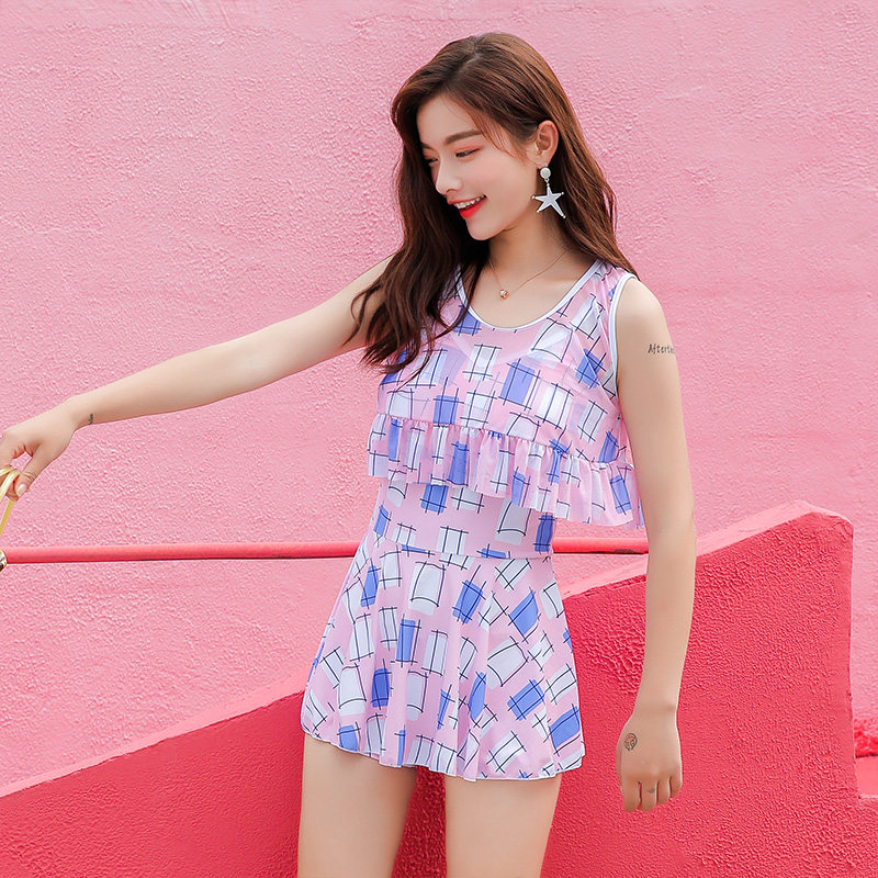 Swimsuit women's one-piece conservative skirt-style three-piece suit, slim, thin, belly-covering, sexy, gathered, fairy fan, hot spring swimsuit