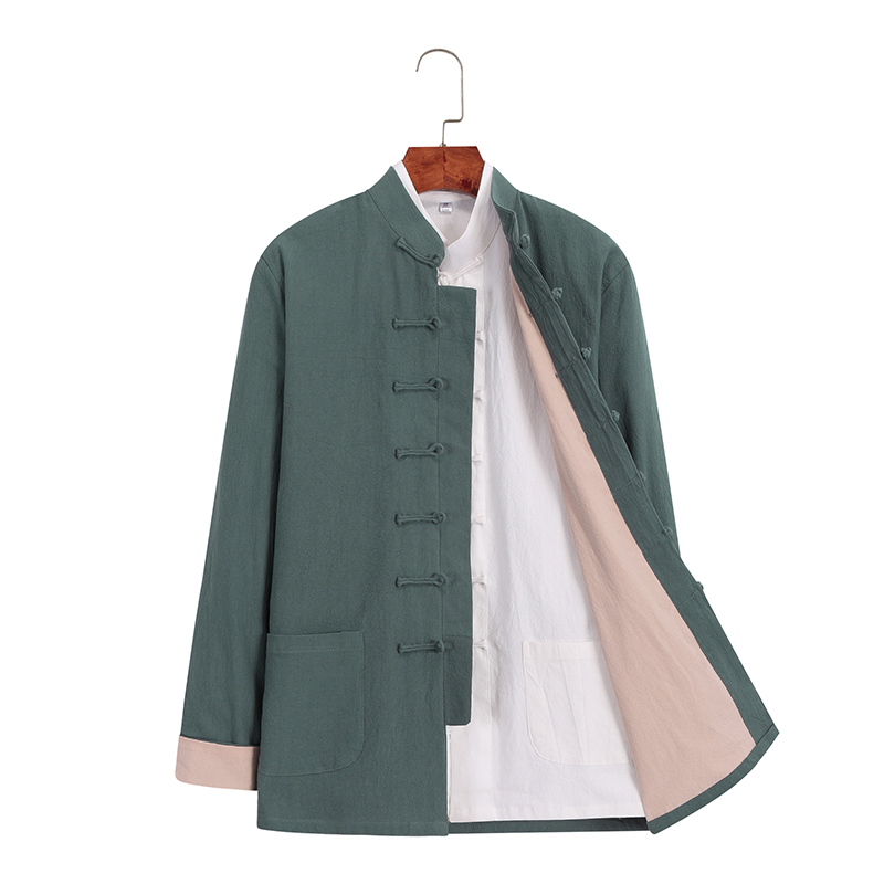 Elderly long sleeves jacket in linen Tang suit jacket autumn winter thickened disc buckle Zhongshan clothes Tai Chi clothes Chinese style men's clothing
