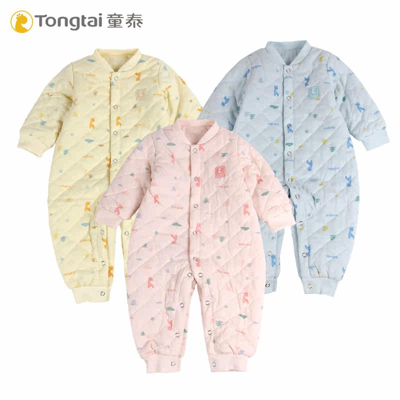 Tong Tai Lian outfit autumn winter plus thick cotton quilting closed crotch khaclothes 3-18 month male and female baby pure cotton clothes
