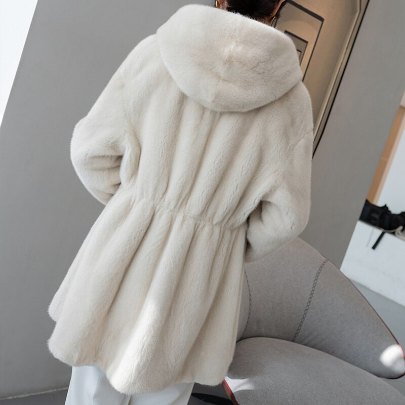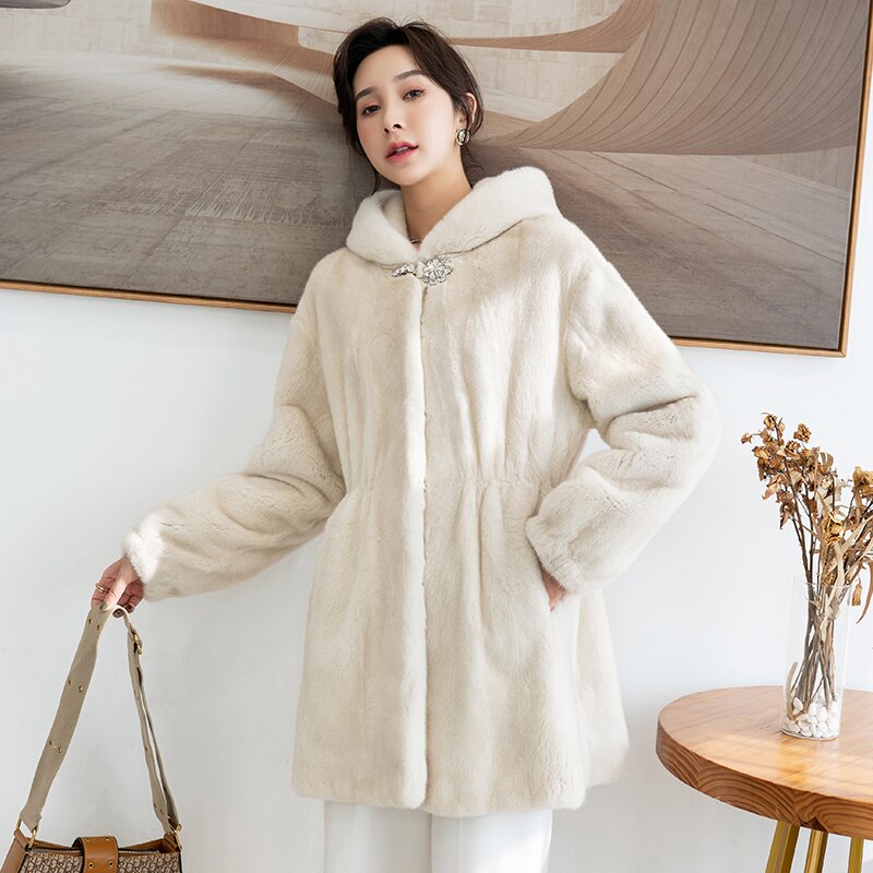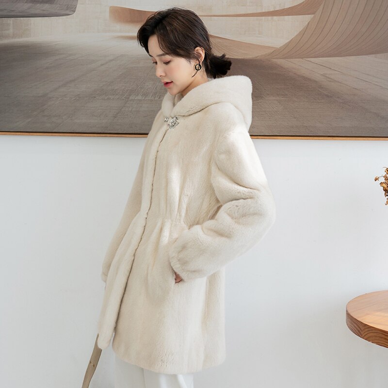 women's mid length mink hooded coat slim fashionable young 2021 imported velvet mink fur