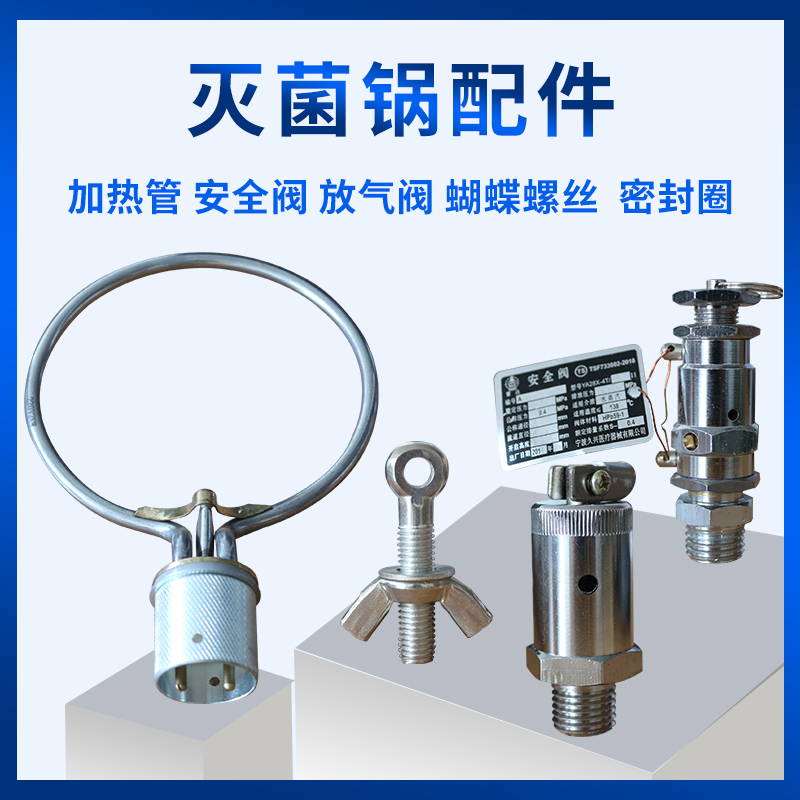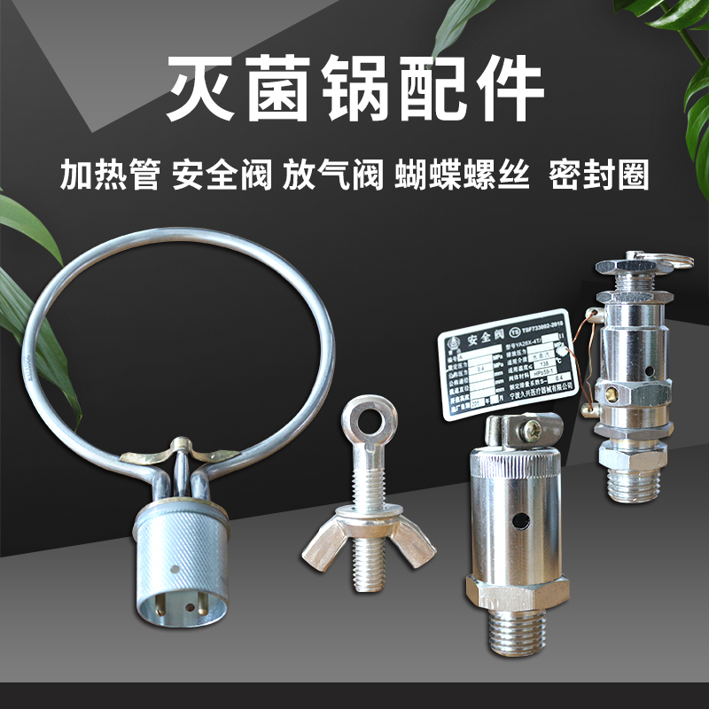 Sterilizer accessories Heating ring Vent valve Sealing ring Safety valve Butterfly screw Heating tube Anti-dry burning