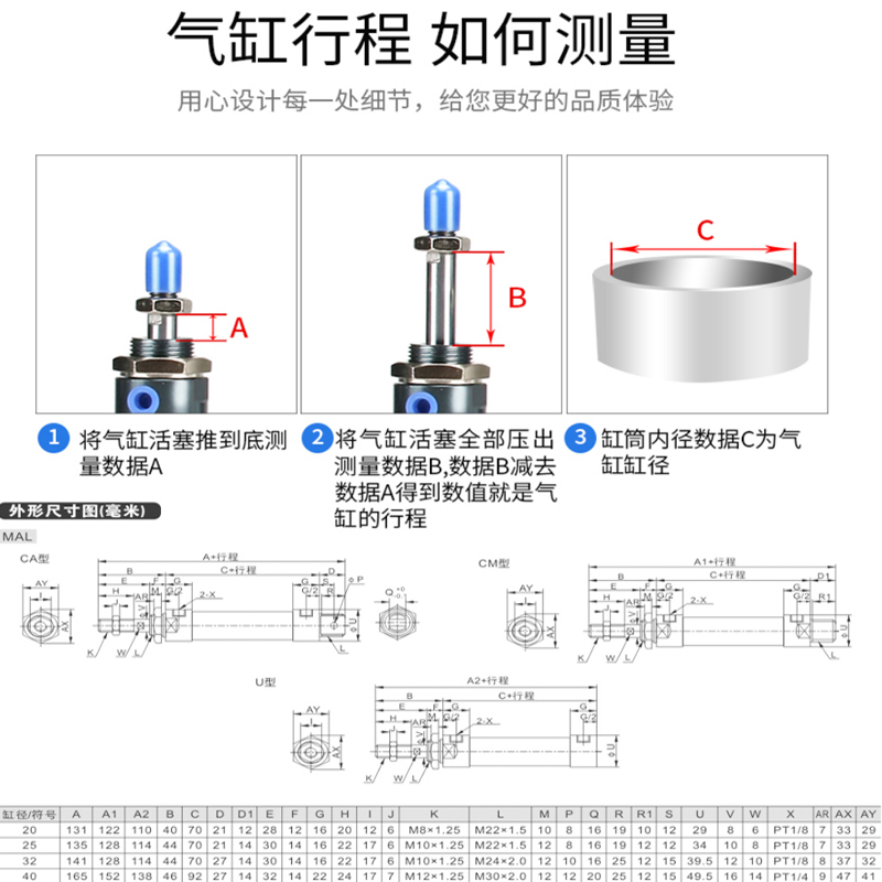 Stainless steel mini cylinder small pneumatic MA20 25*50 75 100 125 150 200 300 400S