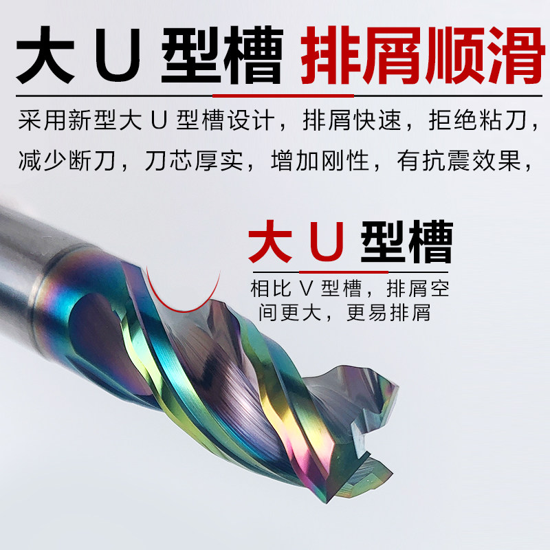Dynamic aluminum milling cutter tungsten steel efficient coarse front blade U - shape slot coarse corn 3 three blade