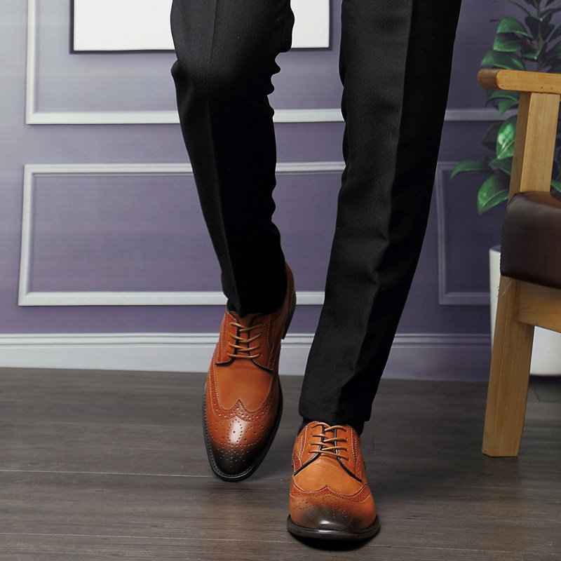 British Brock Carved Small Size Men's Shoes 35 Groom 36 Wedding 37 Leather Oxford Shoes Business Dress Shoes Men