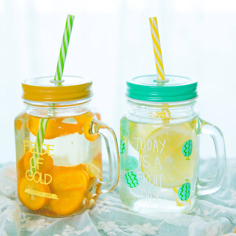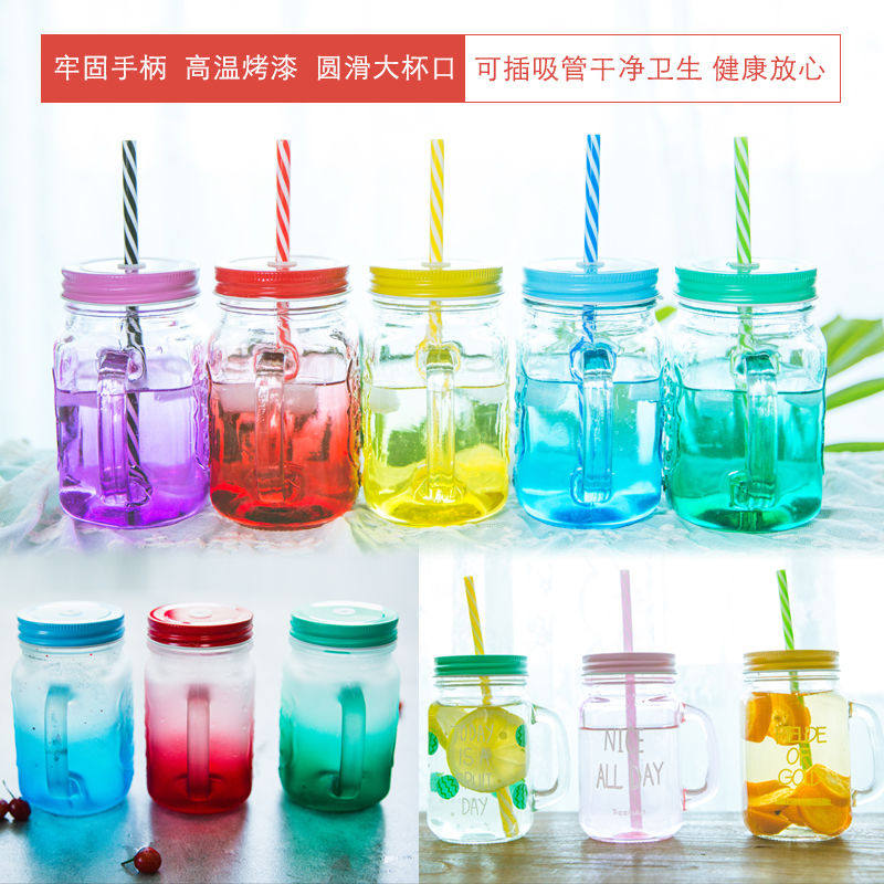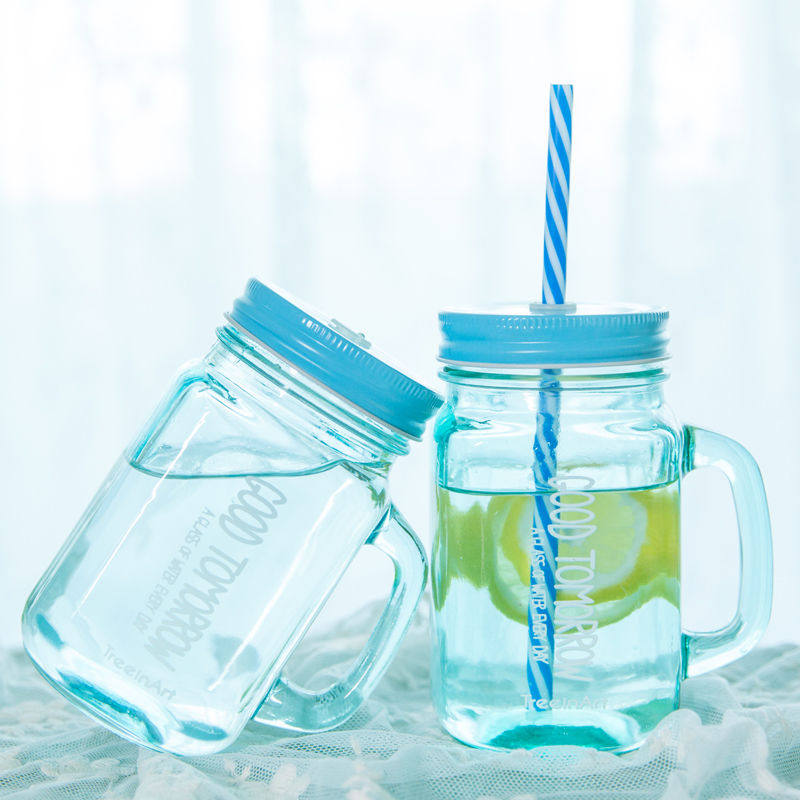 Glass water cup rooster cup Mason cup cold drink juice flower tea yogurt lemon cup with handle straw student couple