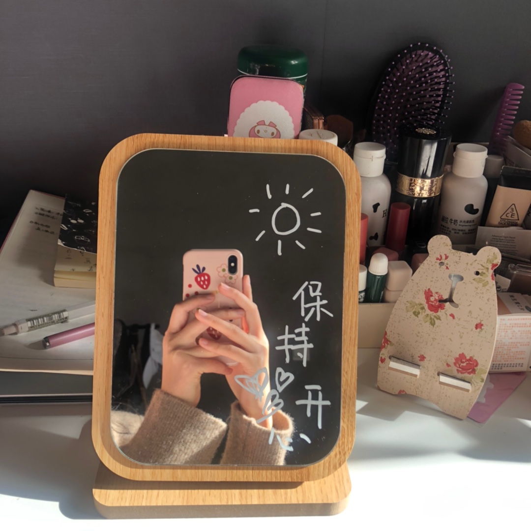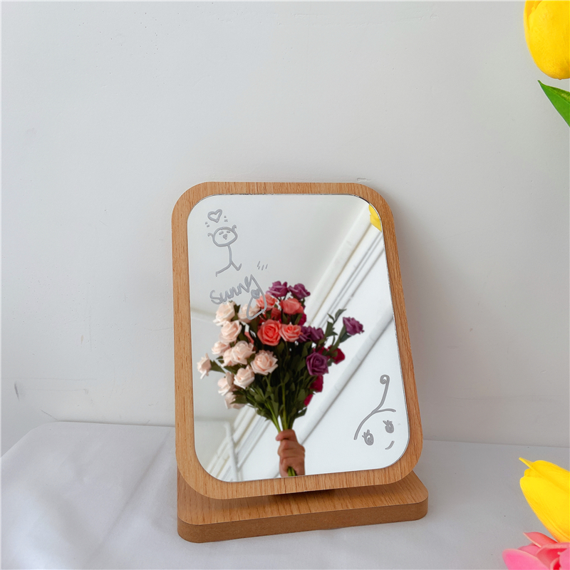 ins wind woody makeup mirror student dormitories portable desktop desktop adjustable mirror pendulum to send white pen-Taobao