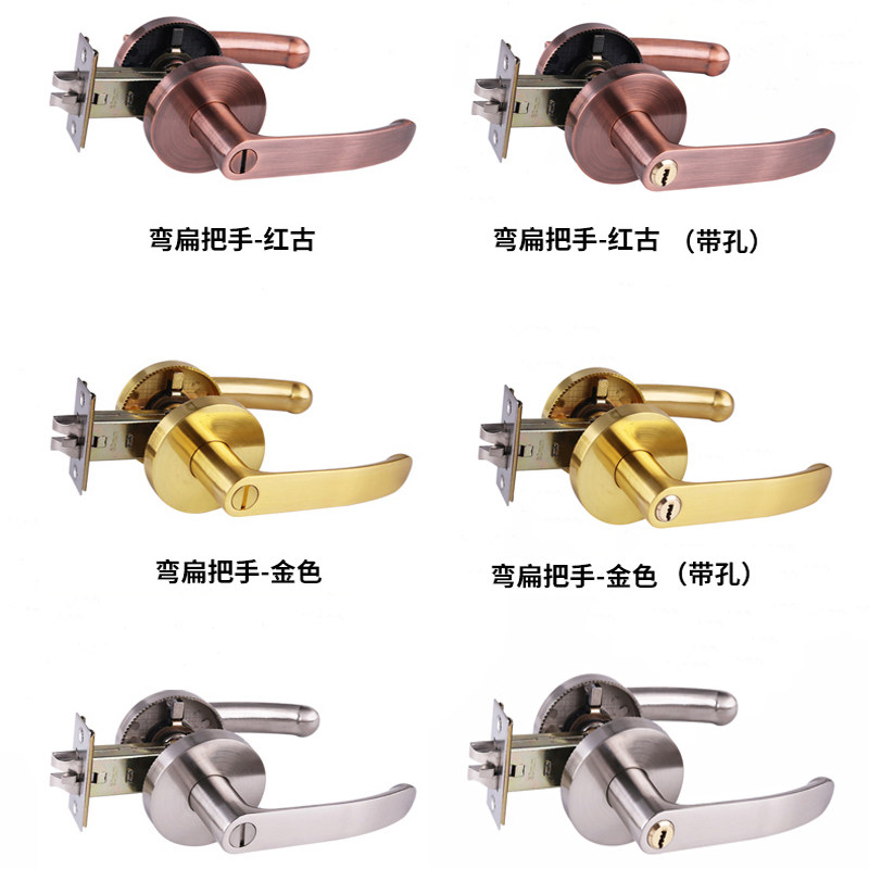 Three-bar lock bedroom door lock mute spherical universal hotel keyless rose gold single tongue plate hand lock factory direct sales