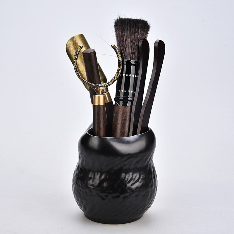 Tang Qian Ebony solid wood Tea Ceremony Six gentlemen set Kung Fu tea accessories Zero matching cup fork raising pot Pen tea clip Tea knife